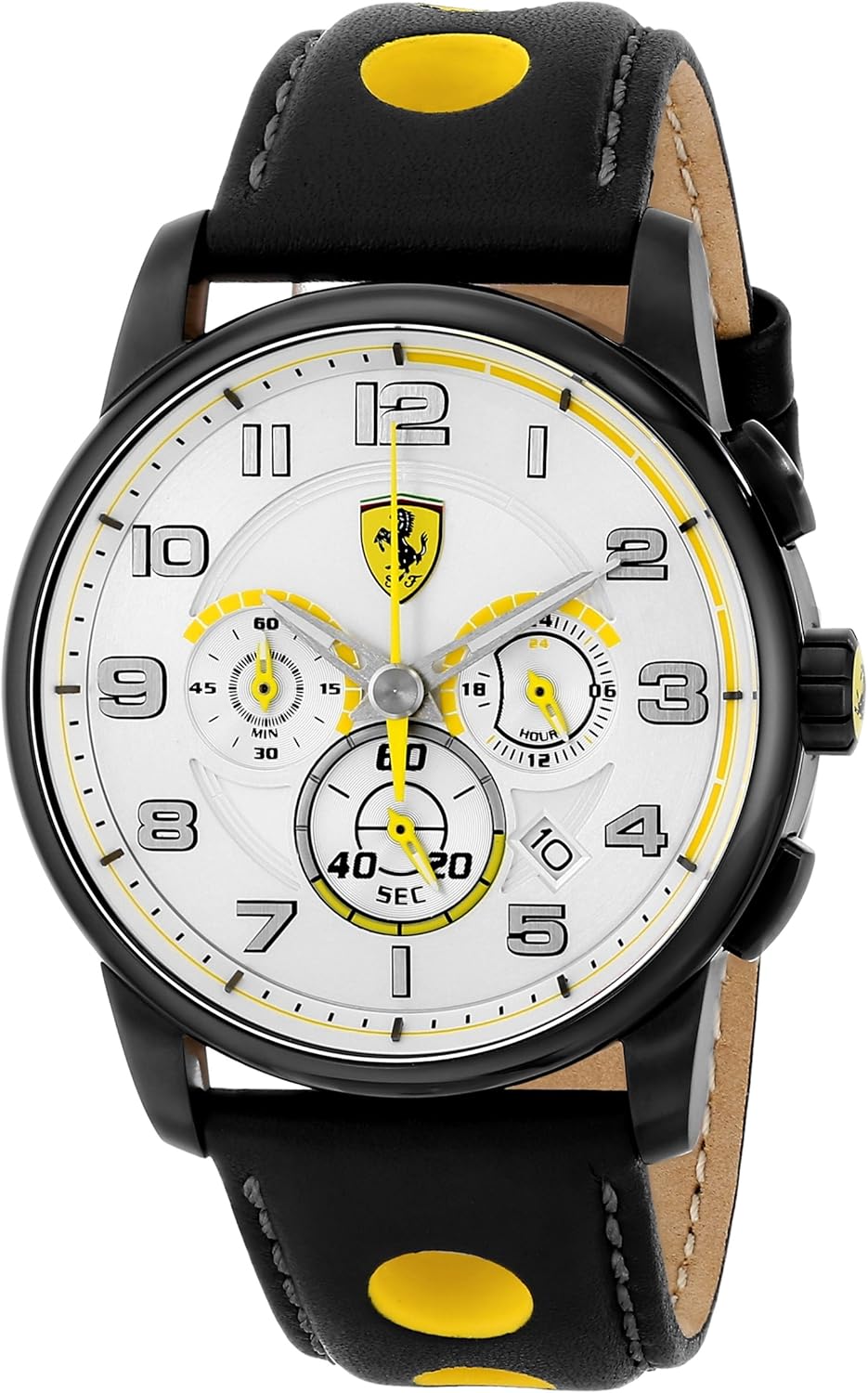 Scuderia Ferrari Men S Chronograph Formula Italia Black Leather Strap Watch 46mm 0830314 Wa Black Leather Strap Mens Chronograph Stainless Steel Bracelet Men