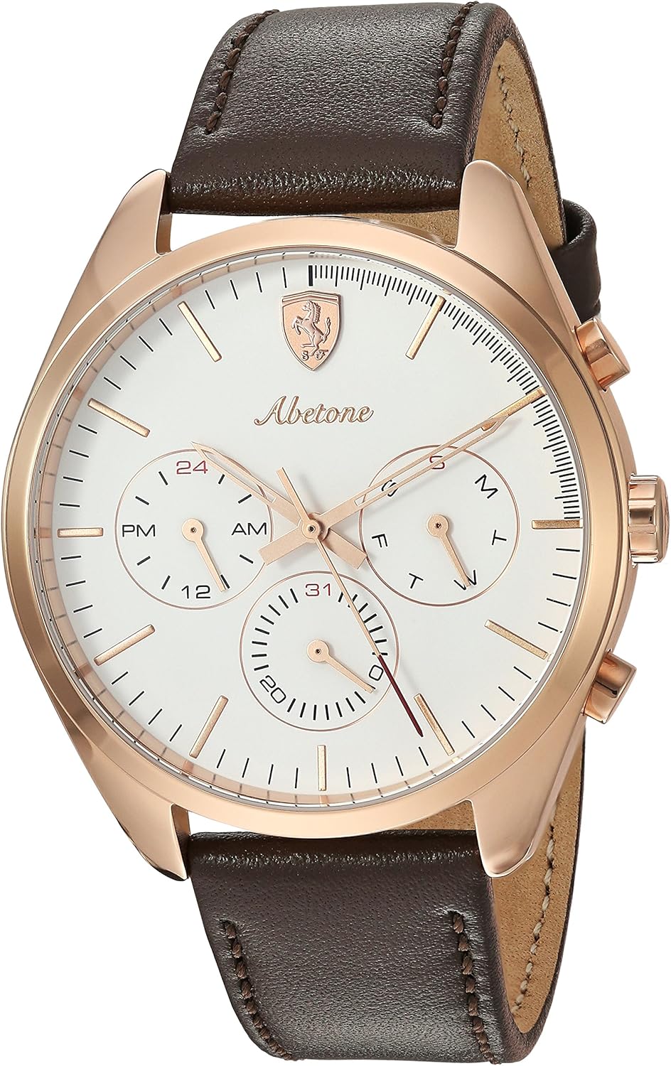 Amazon Com Scuderia Ferrari Mens Abetone Brown Leather Strap White Dial 0830504 Watches